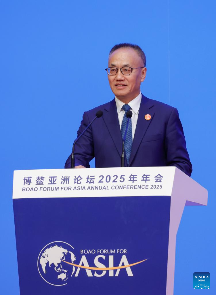 Chinese Vice Foreign Minister Chen Xiaodong speaks at a high-level dialogue themed on "Global Governance after the UN Summit of the Future" during the Boao Forum for Asia (BFA) Annual Conference 2025 in Boao, south China's Hainan Province, March 26, 2025. (Xinhua/Du Xiaoyi)