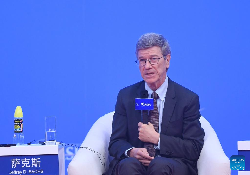 Jeffrey D. Sachs, professor of Columbia University, speaks at a high-level dialogue themed on "Building Trust in the Shifting Global Landscape" during the Boao Forum for Asia (BFA) Annual Conference 2025 in Boao, south China's Hainan Province, March 26, 2025. (Xinhua/Xie Ziyi)