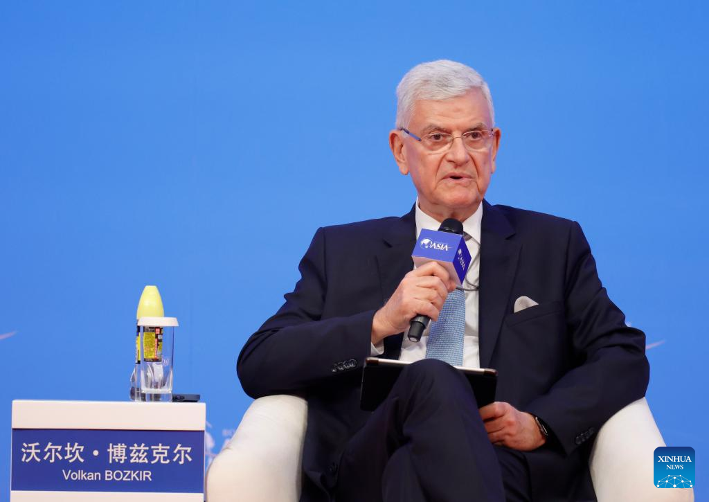Volkan Bozkir, president of the 75th session of the United Nations General Assembly, speaks at a high-level dialogue themed on "Global Governance after the UN Summit of the Future" during the Boao Forum for Asia (BFA) Annual Conference 2025 in Boao, south China's Hainan Province, March 26, 2025. (Xinhua/Du Xiaoyi)