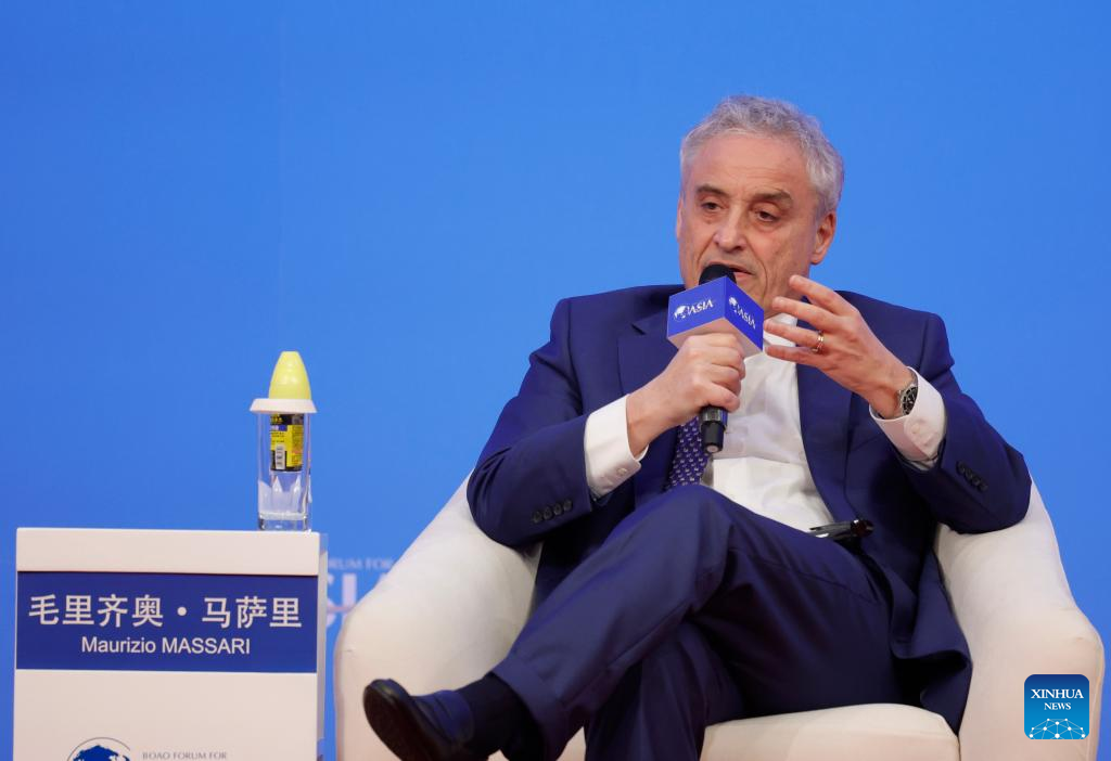 Maurizio Massari, permanent representative of Italy to the United Nations, speaks at a high-level dialogue themed on "Global Governance after the UN Summit of the Future" during the Boao Forum for Asia (BFA) Annual Conference 2025 in Boao, south China's Hainan Province, March 26, 2025. (Xinhua/Du Xiaoyi)