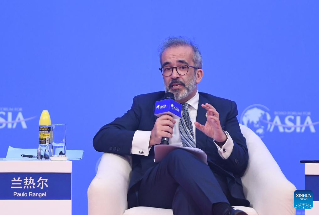 Portugal's Minister of State and Foreign Affairs Paulo Rangel speaks at a high-level dialogue themed on "Building Trust in the Shifting Global Landscape" during the Boao Forum for Asia (BFA) Annual Conference 2025 in Boao, south China's Hainan Province, March 26, 2025. (Xinhua/Xie Ziyi)