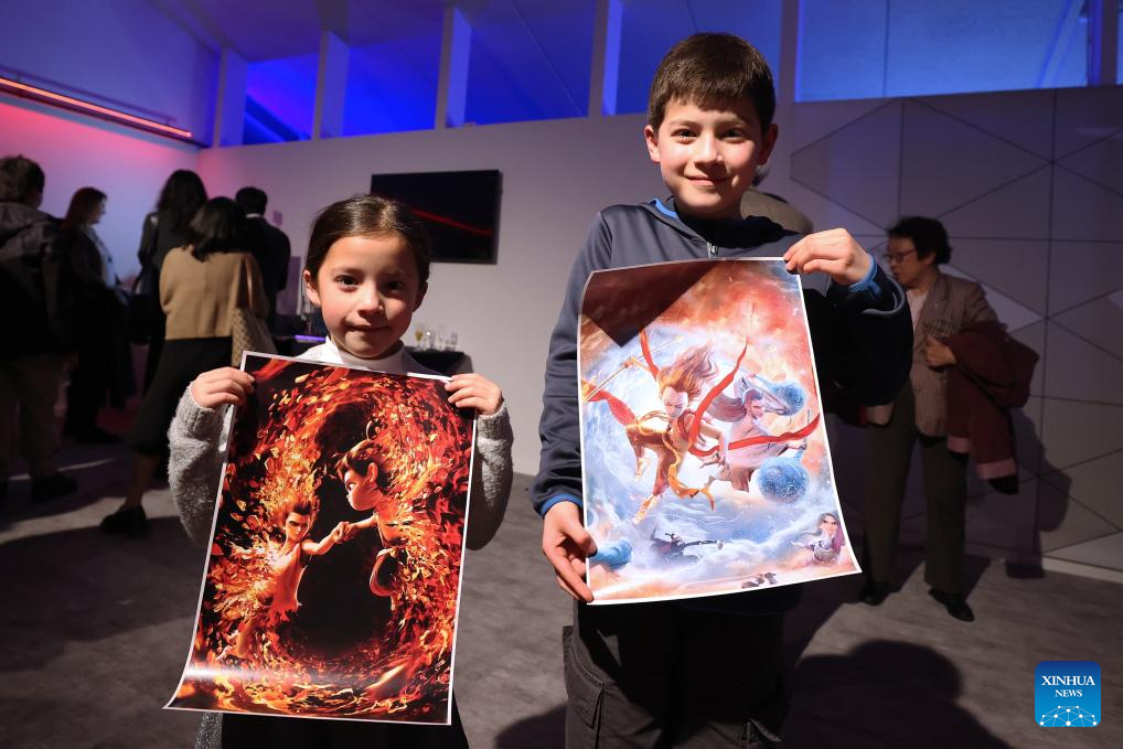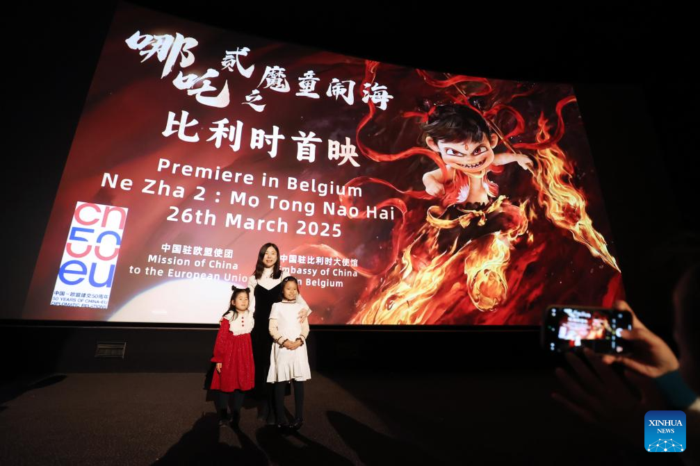 Audience pose for photos at the Belgian premiere of Chinese animated film Ne Zha 2 in Brussels, Belgium, March 26, 2025. (Xinhua/Zhao Dingzhe)