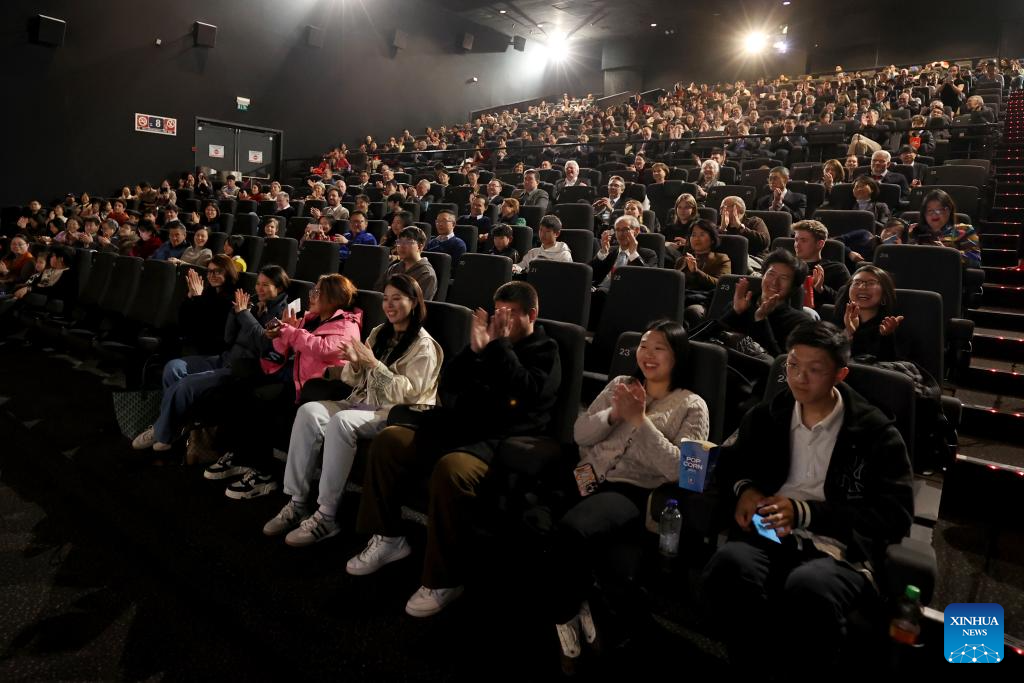 Audience watch Chinese animated film Ne Zha 2 at the Belgian film premiere in Brussels, Belgium, March 26, 2025. (Xinhua/Zhao Dingzhe)