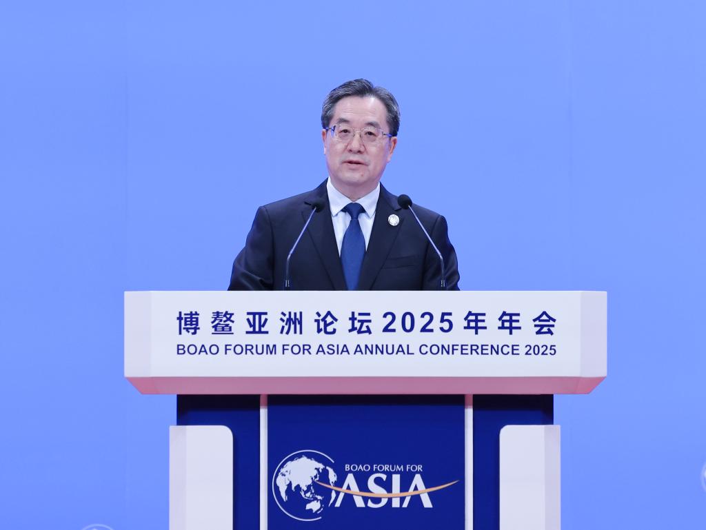 Chinese Vice Premier Ding Xuexiang, also a member of the Standing Committee of the Political Bureau of the Communist Party of China Central Committee, delivers a keynote speech while attending the opening ceremony of the Boao Forum for Asia Annual Conference 2025 in Boao, south China's Hainan Province, March 27, 2025. (Xinhua/Yao Dawei)