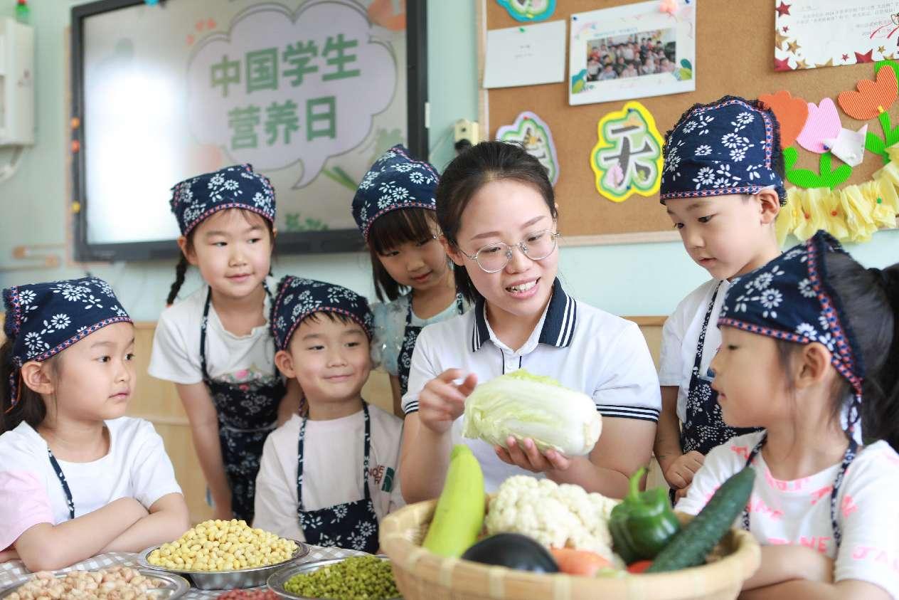 A teacher teaches children to balance their diets in a kindergarten in Handan, north China's Hebei province. (People's Daily Online/Li Hao)