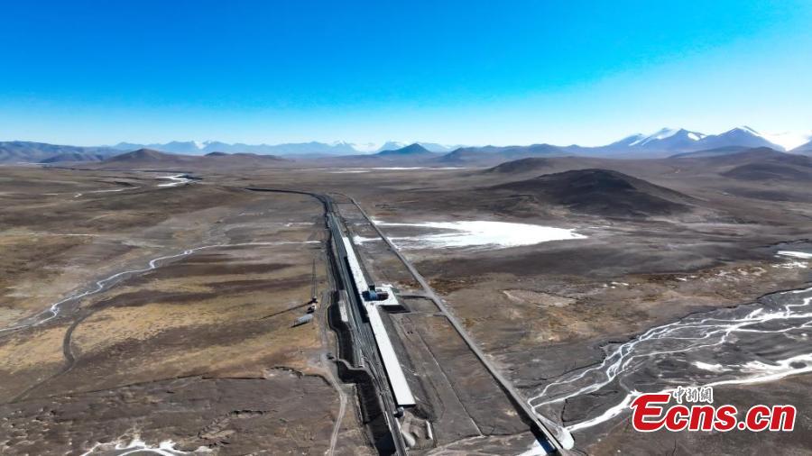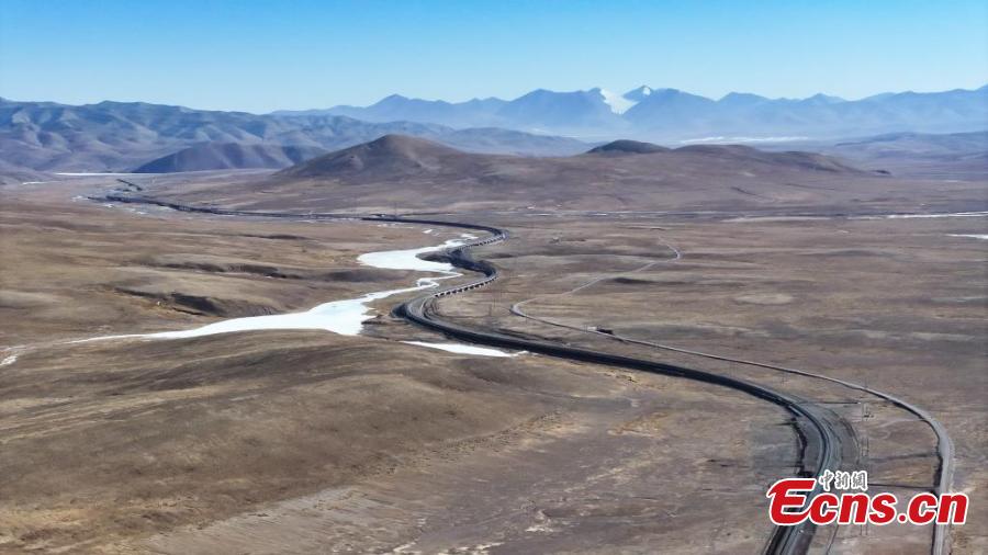 Aerial view of the Tanggula Railway Station on the Qinghai-Xizang railway in Xizang Autonomous Region, March 27, 2025. (China News Service/Ma Mingyan)