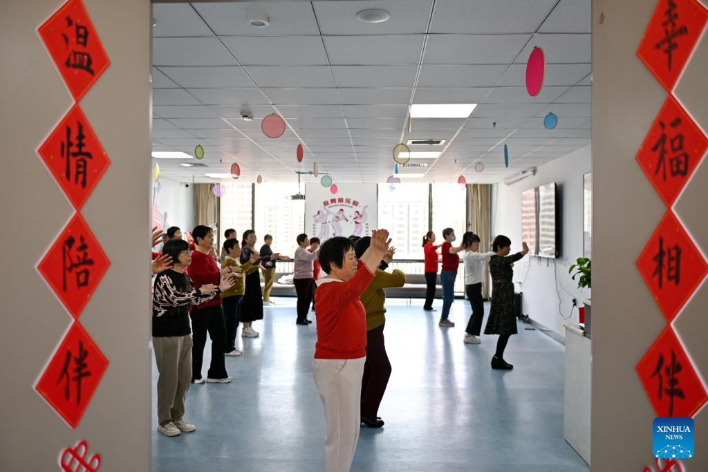 People dance at a nursing home in the Rongxi area of the Xiong'an New Area, north China's Hebei Province, March 25, 2025. Since China announced plans to establish the Xiong'an New Area in April 2017, it has evolved from a blueprint into a vibrant city.