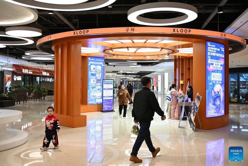 People are pictured at the XLOOP commercial area in the business service center in the Xiong'an New Area, north China's Hebei Province, March 18, 2025. Since China announced plans to establish the Xiong'an New Area in April 2017, it has evolved from a blueprint into a vibrant city.
