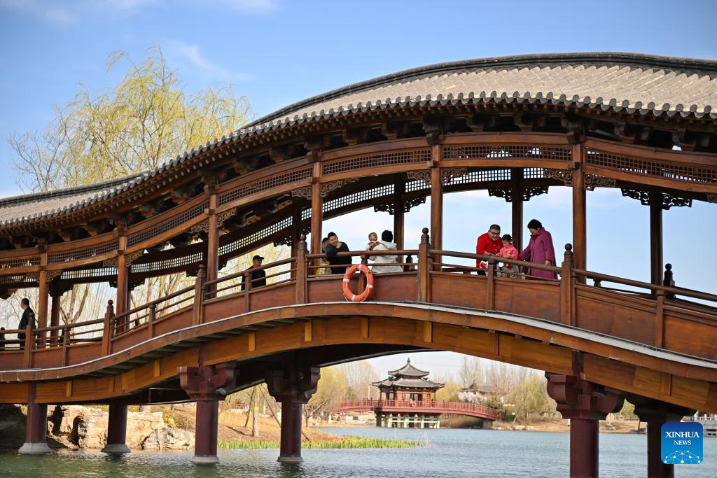 People enjoy leisure time at Yuerong Park in the Xiong'an New Area, north China's Hebei Province, March 19, 2025. Since China announced plans to establish the Xiong'an New Area in April 2017, it has evolved from a blueprint into a vibrant city.