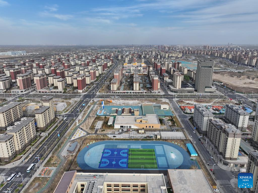 An aerial drone photo taken on March 25, 2025 shows a school in the Rongxi area of the Xiong'an New Area, north China's Hebei Province. Since China announced plans to establish the Xiong'an New Area in April 2017, it has evolved from a blueprint into a vibrant city.