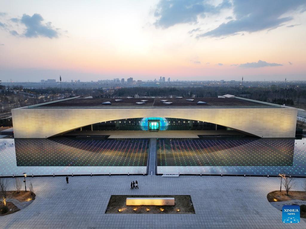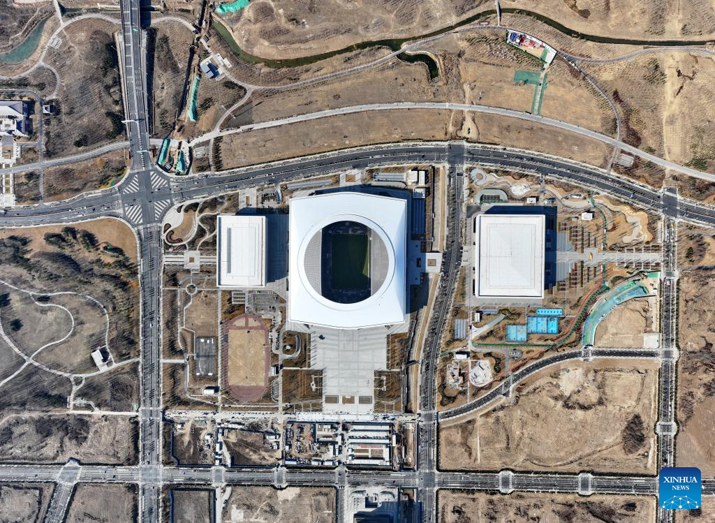 An aerial drone photo taken on March 16, 2025 shows the Xiong'an sports center in Xiong'an New Area, north China's Hebei Province.