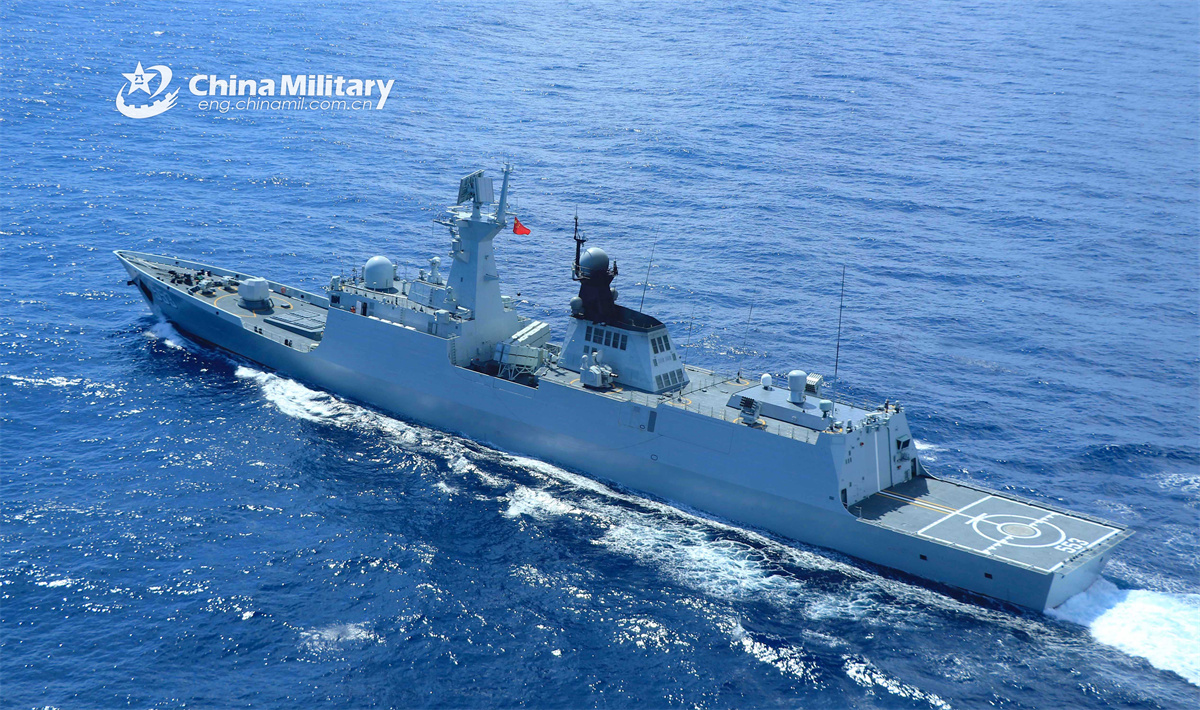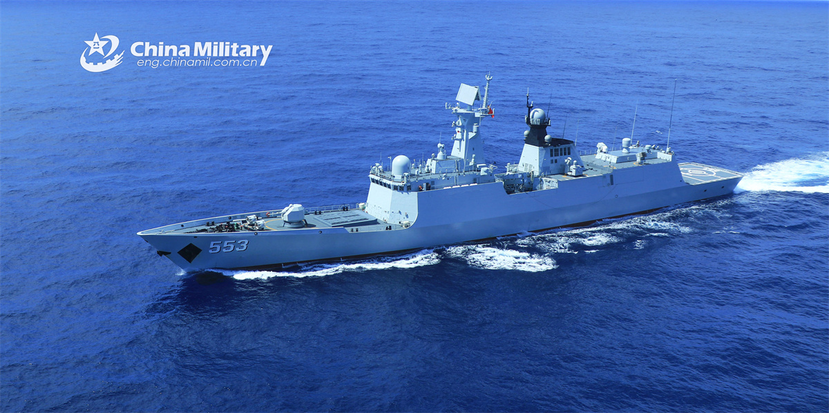Frigate Dali (Hull 553), attached to a flotilla of the Chinese PLA Navy, steams ahead towards the designated waters during a training exercise on February 25, 2025. (eng.chinamil.com.cn/Fang Zhikun)