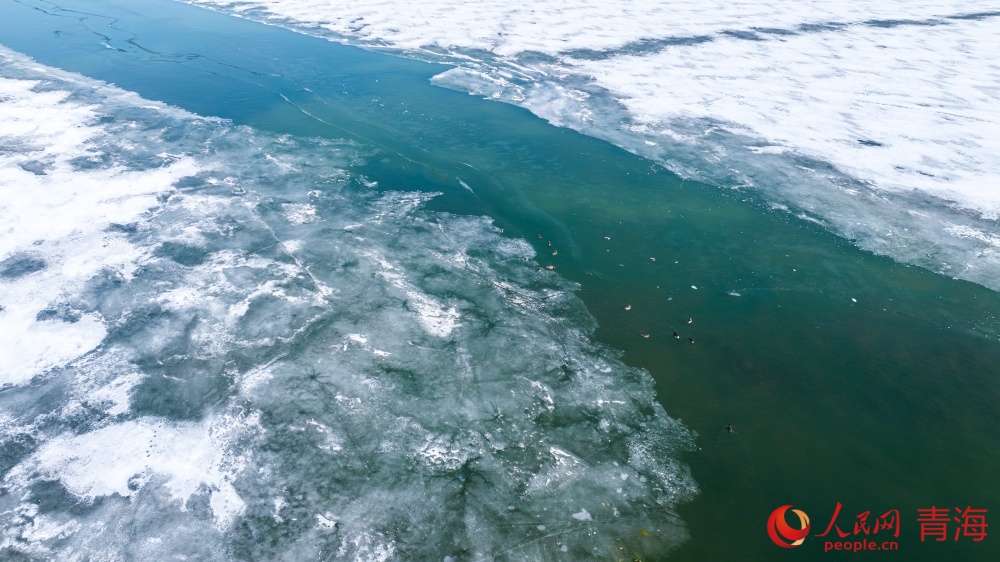Ice on Qinghai Lake in northwest China's Qinghai Province begins to melt. (People's Daily Online/Kuang Yu)