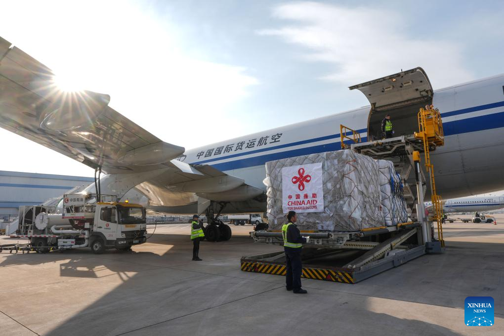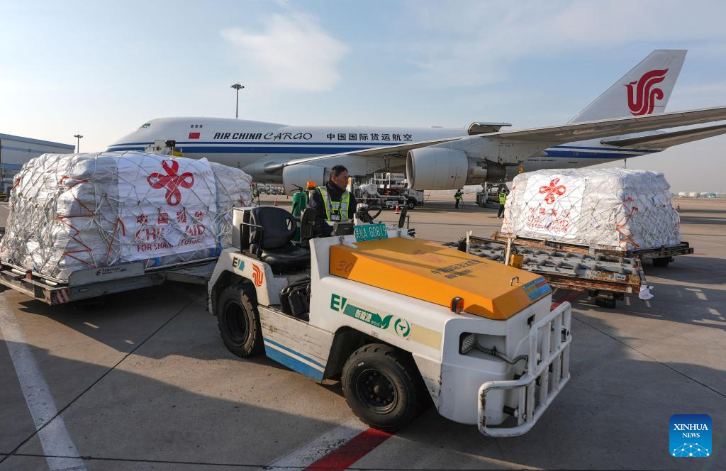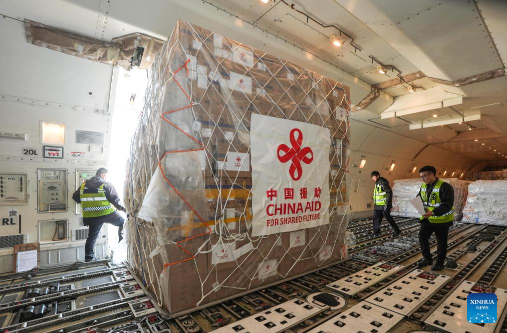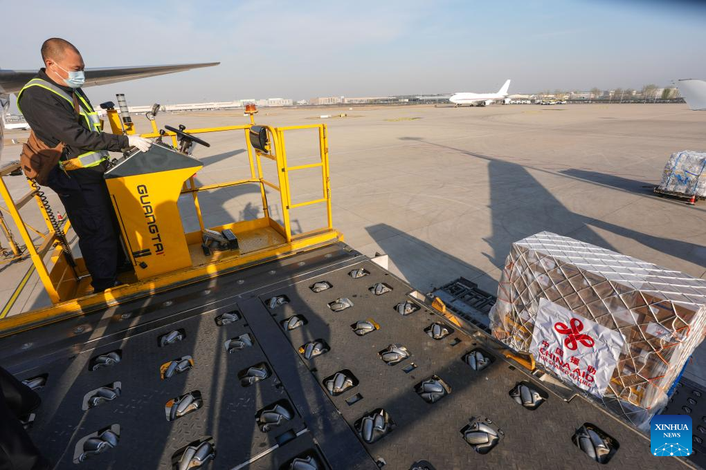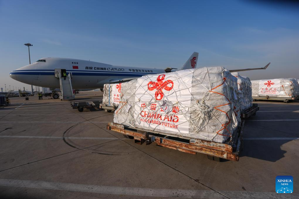 This photo shows China's first batch of emergency humanitarian aid to Myanmar at Beijing Capital International Airport in Beijing, capital of China, March 31, 2025. (Xinhua/Chen Yehua)