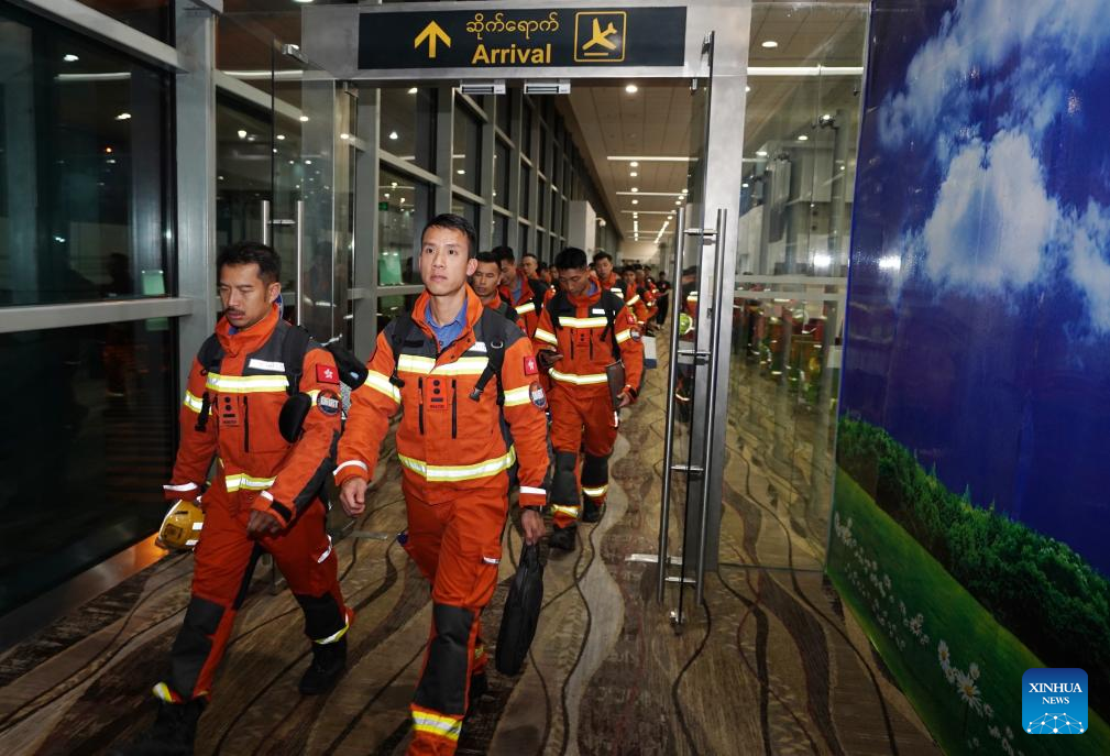 YANGON, March 29 (Xinhua) -- A rescue team from the Hong Kong Special Administrative Region government arrived in Yangon, Myanmar on Saturday after a 7.7-magnitude earthquake hit the country on Friday.