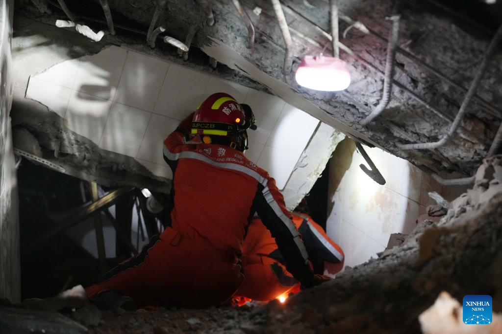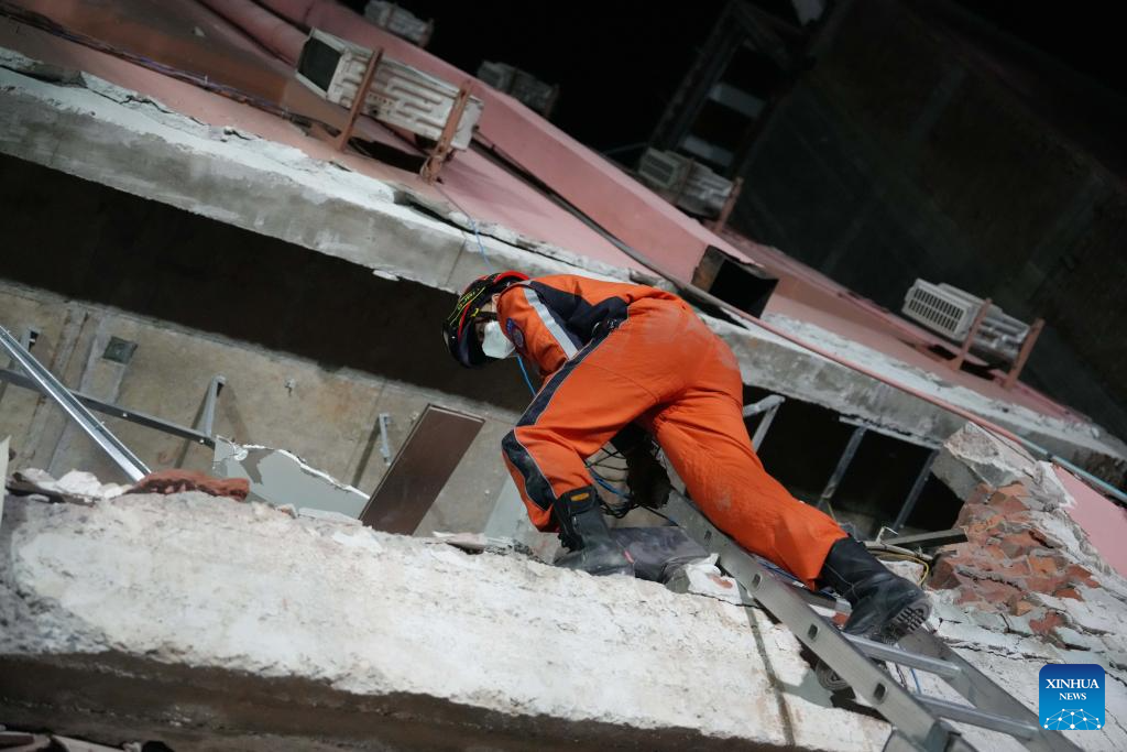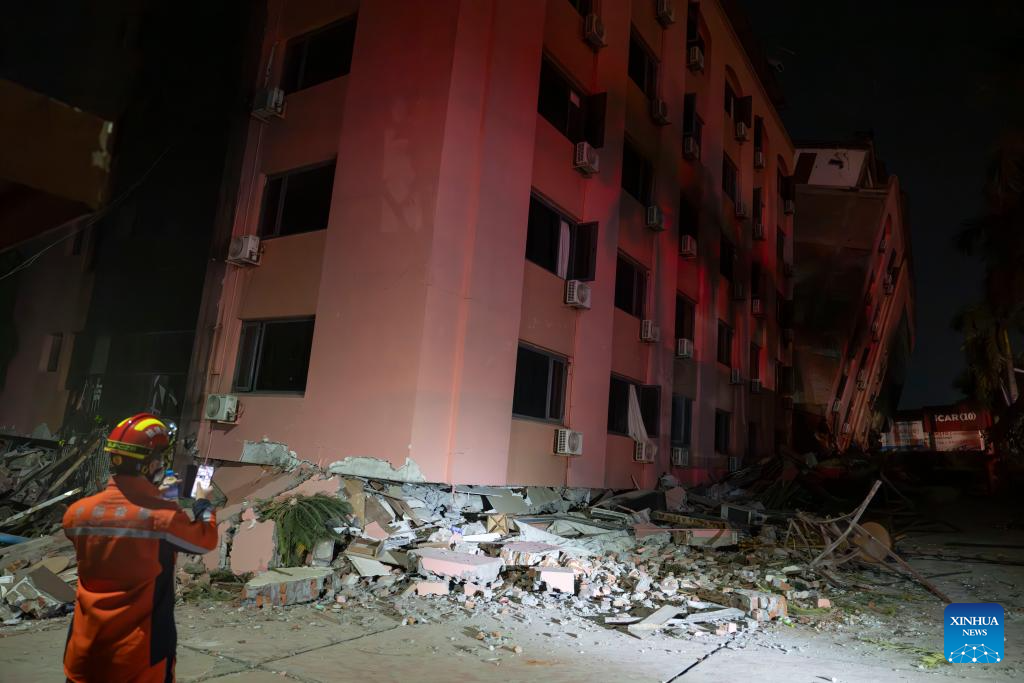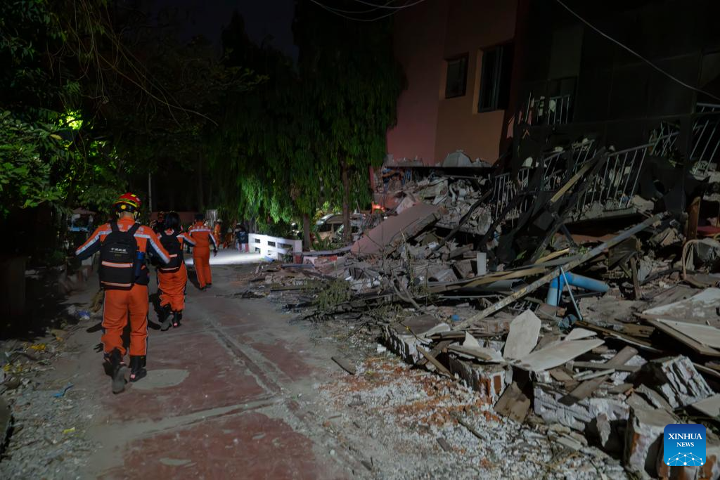 Members of the China Search and Rescue Team conduct rescue work in Mandalay, Myanmar, March 30, 2025. (Xinhua/Cai Yang)