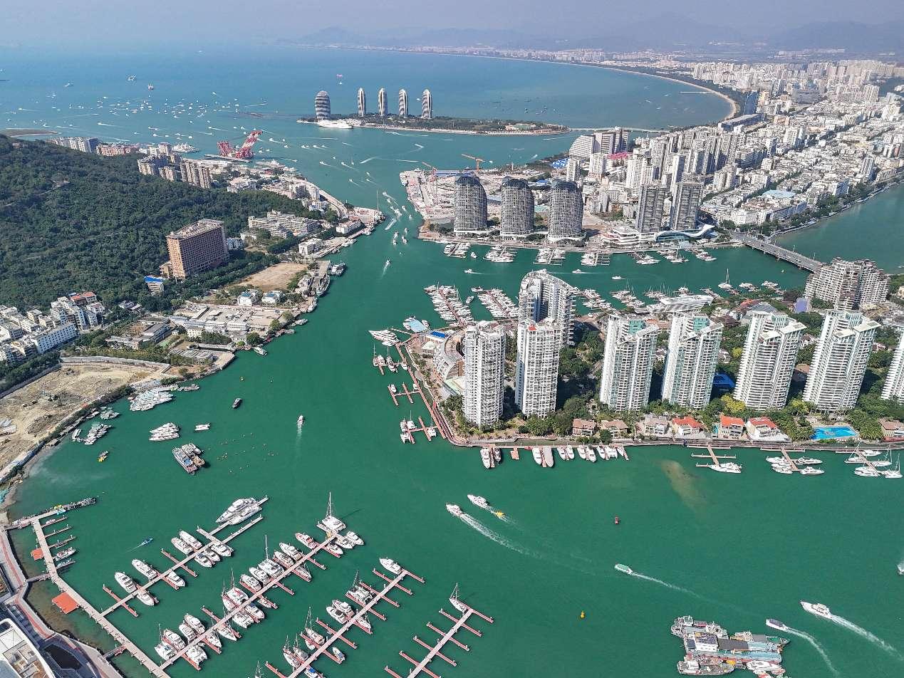 Photo shows the core area of the yacht industry in the Hainan Free Trade Port, which includes the Sanya International Yachting Centre, the Sanya Cruise Tourism Center, and the Hongzhou Yacht Marina. (People's Daily Online/Ye Longbin)