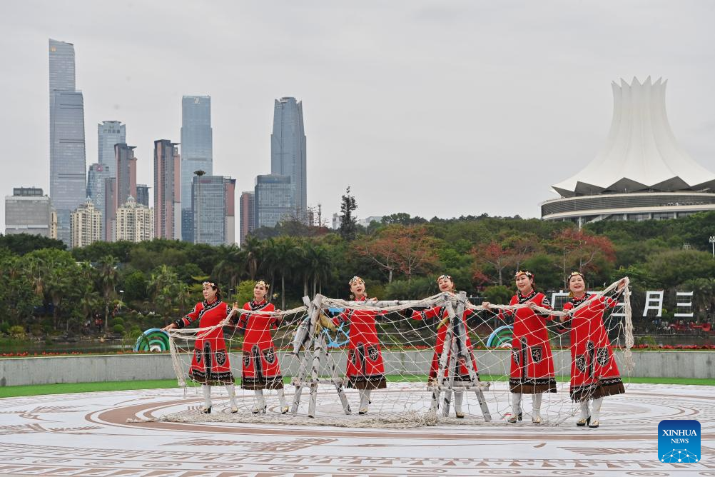 A folk song troupe from central China's Hubei Province perform during the opening ceremony of a carnival in Nanning, south China's Guangxi Zhuang Autonomous Region, March 31, 2025. The carnival opened in Nanning on Monday to celebrate the Sanyuesan Festival, a festival celebrated on the third day of the third lunar month, which falls on March 31 this year. (Xinhua/Huang Xiaobang)