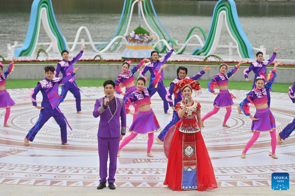 Actors perform during the opening ceremony of a carnival in Nanning, south China's Guangxi Zhuang Autonomous Region, March 31, 2025. The carnival opened in Nanning on Monday to celebrate the Sanyuesan Festival, a festival celebrated on the third day of the third lunar month, which falls on March 31 this year. (Xinhua/Huang Xiaobang)