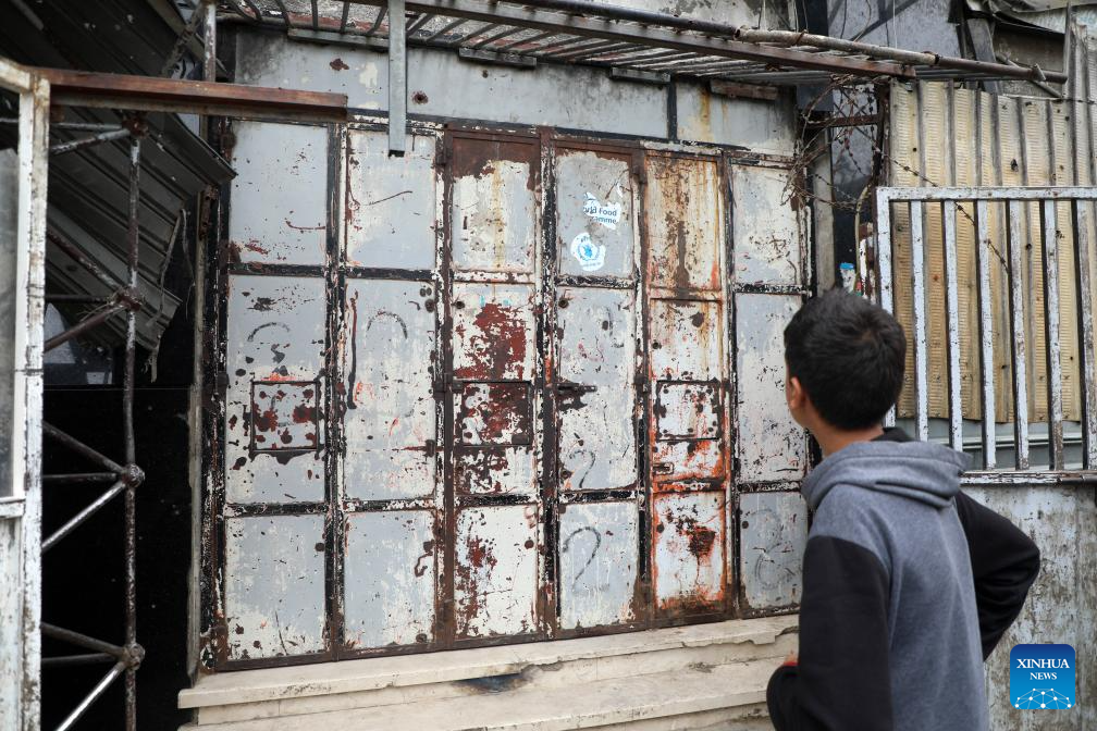 A boy looks at a closed bakery in Gaza City, on April 1, 2025. The aid blockade has forced the shuttering of 25 bakeries in Gaza as food supplies shrivel, Israel's evacuation orders increase and bombardments continue, UN humanitarians said on Tuesday. (Photo by Rizek Abdeljawad/Xinhua)