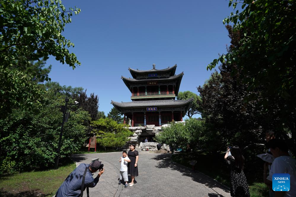 Tourists pose for photos at a park in Taiyuan City, north China's Shanxi Province, July 4, 2023.