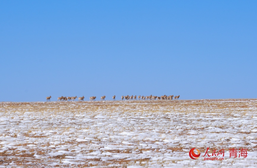 Tibetan antelopes are spotted at Hoh Xil National Nature Reserve in northwest China's Qinghai Province. (People's Daily Online/Gan Haiqiong)