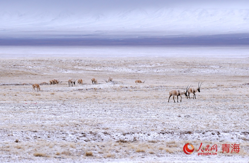 Tibetan antelope forage at Hoh Xil National Nature Reserve in northwest China's Qinghai Province. (People's Daily Online/Gan Haiqiong)