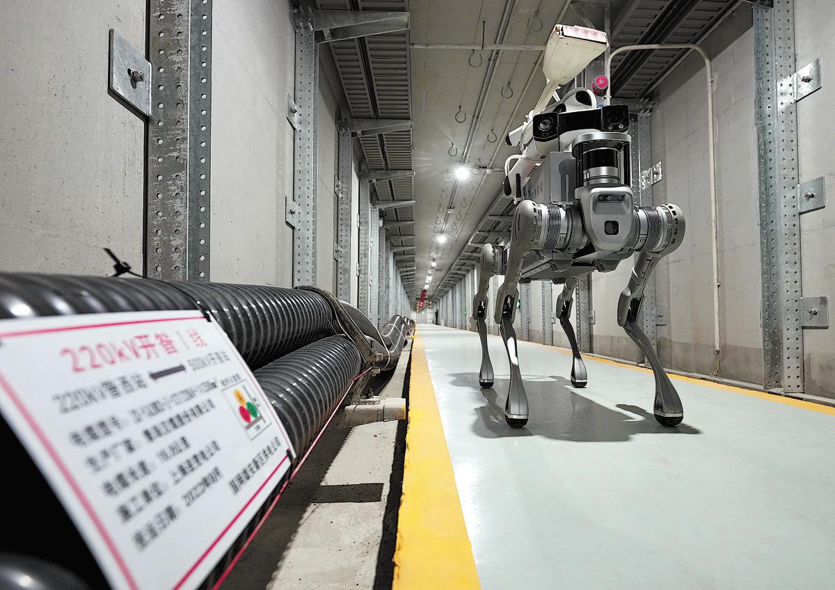 A four-legged robot inspects an electricity project tunnel in Xiong'an last week. (Yang Shiyao/Xinhua)
