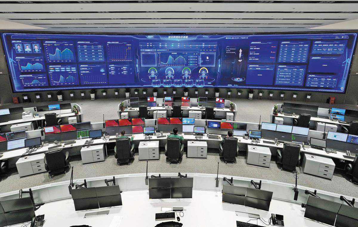 Workers at State Grid's Xiong'an division monitor the city's power supply system in Xiong'an, Hebei province, last week. (Yang Shiyao/Xinhua)
