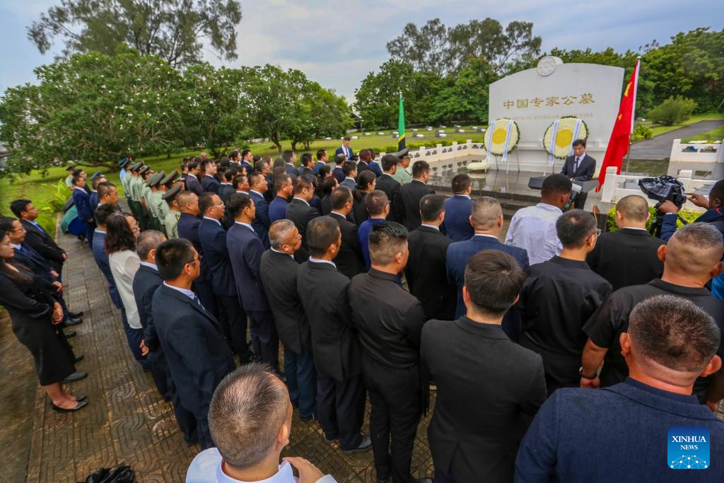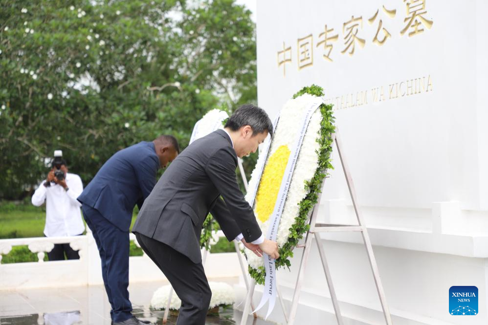 DAR ES SALAAM, April 2 (Xinhua) -- China and Tanzania held a wreath-laying ceremony on Wednesday at the Gongo la Mboto cemetery on the outskirts of Dar es Salaam, honoring 70 Chinese experts who sacrificed their lives while constructing the Tanzania-Zambia Railway in the 1970s.