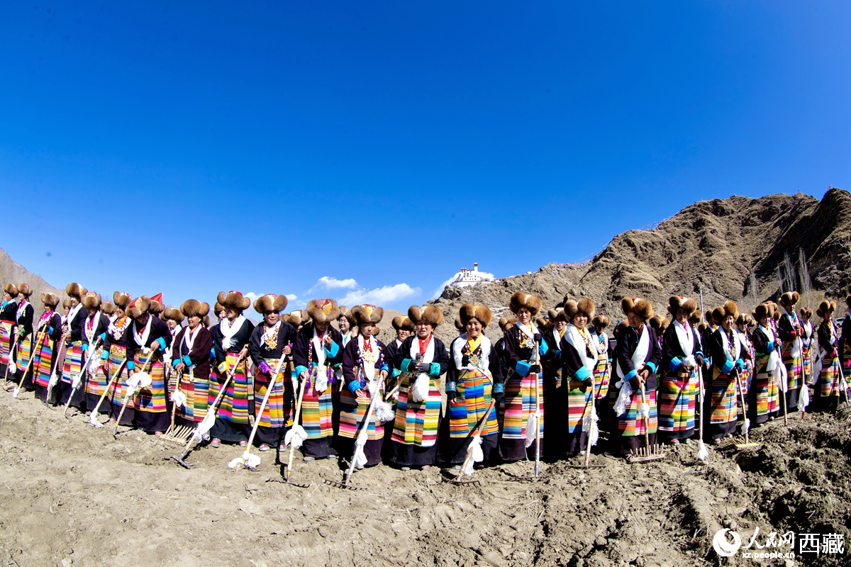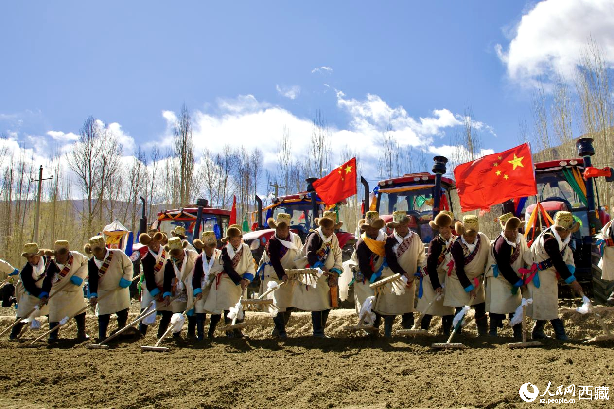 Farmers mark the beginning of spring plowing in Rinbung county, Xigaze city, southwest China's Xizang Autonomous Region. (Photo/People's Daily Online)