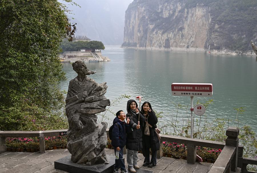 Tourists visit a scenic area in Fengjie County, southwest China's Chongqing Municipality, Dec. 19, 2024. (Xinhua/Wang Quanchao)