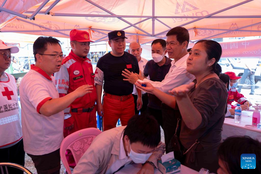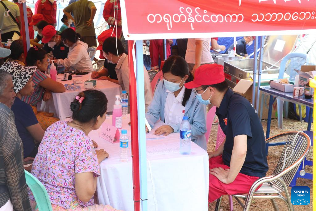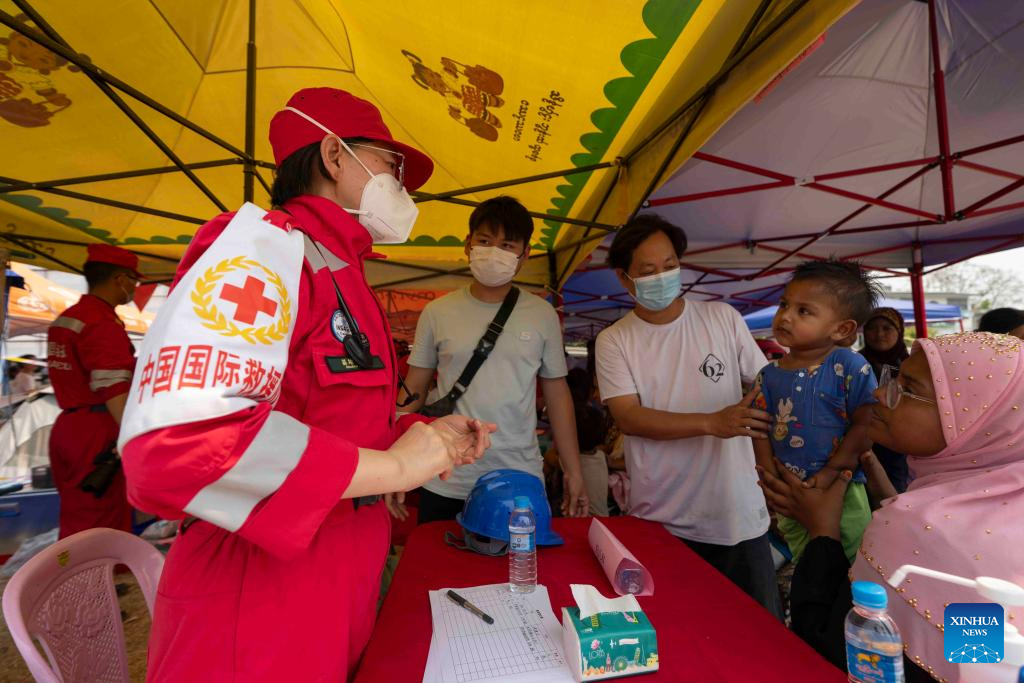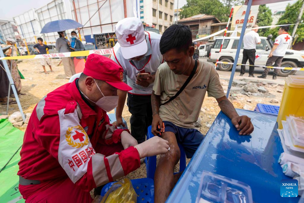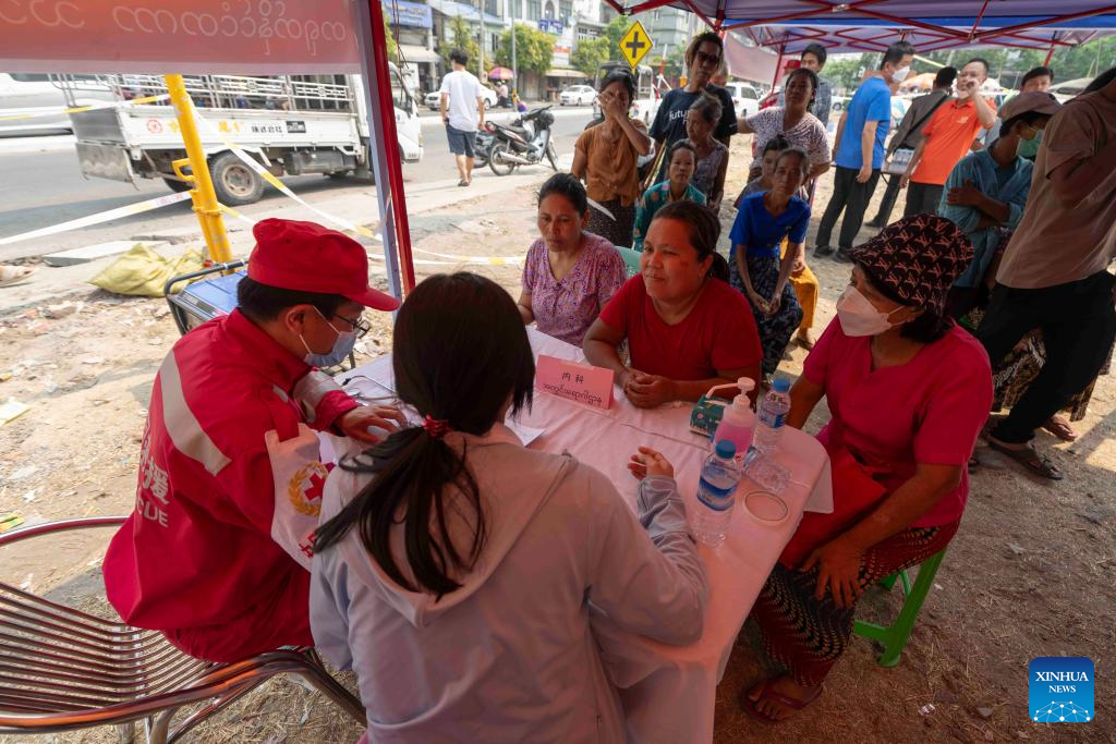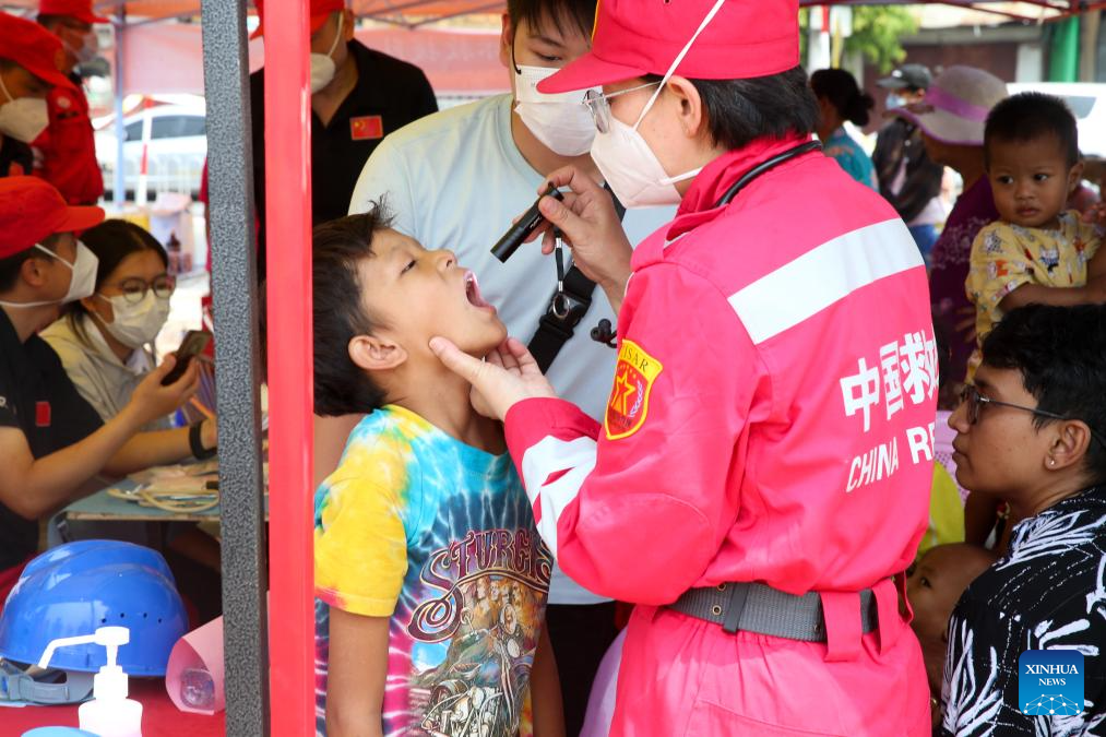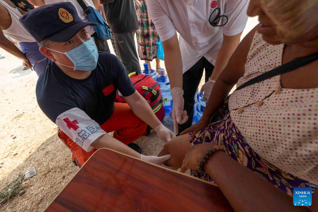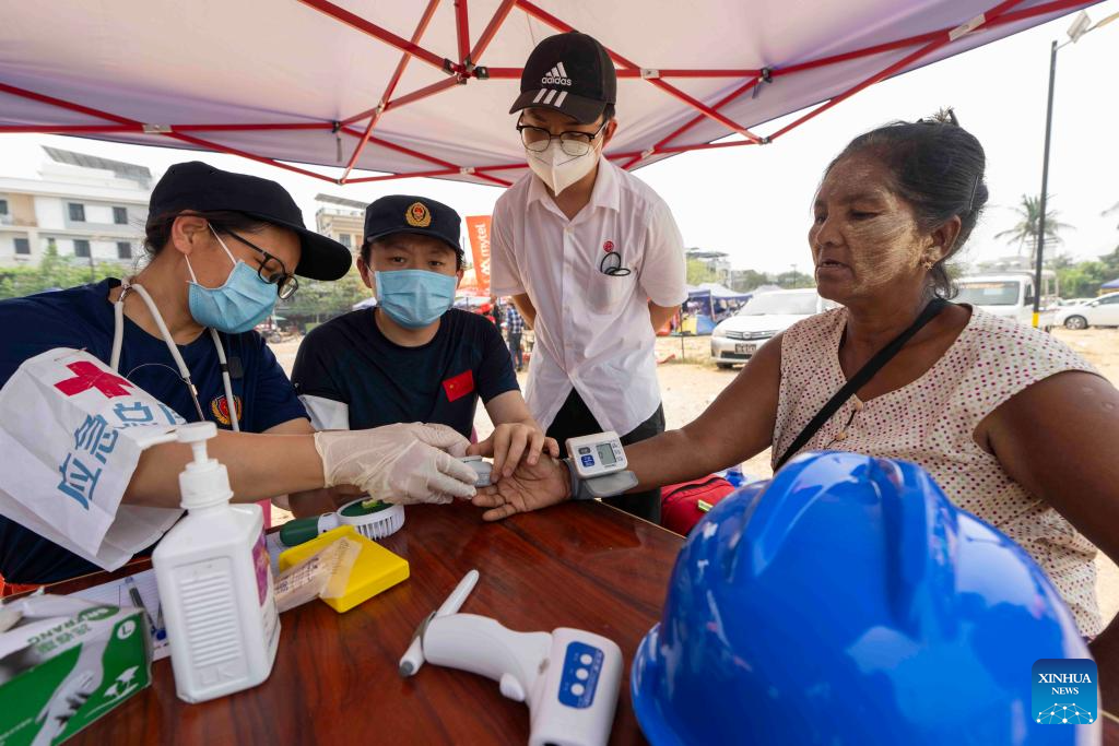 Chinese rescuers provide medical consultations for quake-affected people in Mandalay, Myanmar