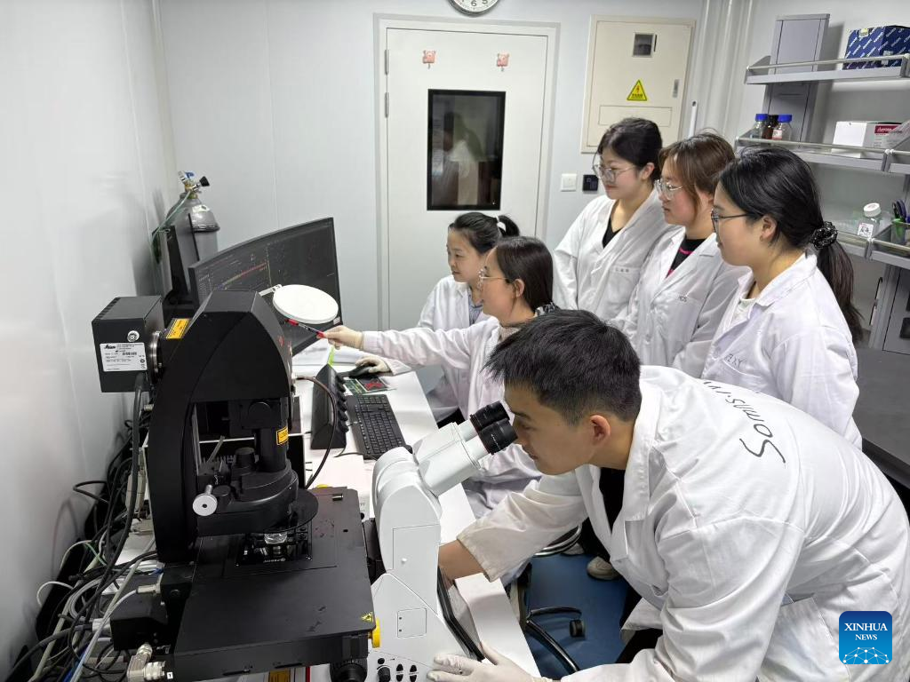 This file photo taken in September 2024 shows members of a research team led by Ye Sheng, professor at Tianjin University, working at a lab in north China's Tianjin. (Xinhua)