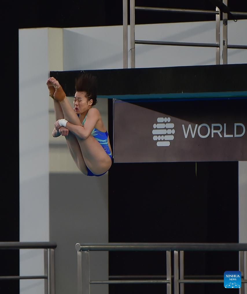 Chen Yuxi of China competes during the women 10m platform final at the World Aquatics Diving World Cup 2025 in Guadalajara, Jalisco, Mexico, on April 5, 2025. (Photo by Alejandro Acosta/Xinhua)