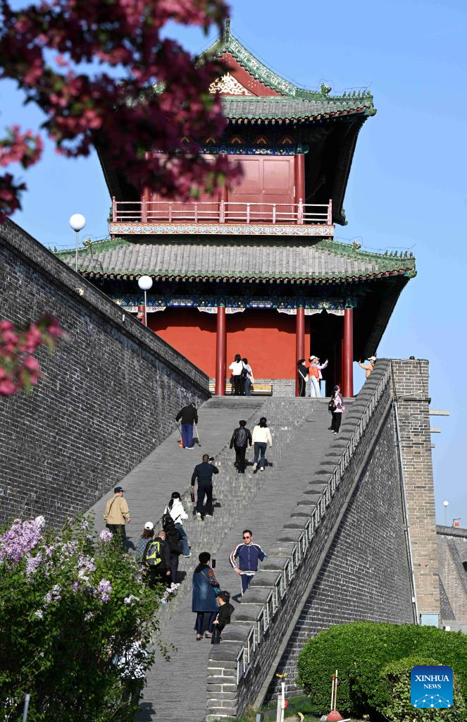 Tourists visit the Zhengding ancient city in Shijiazhuang, north China's Hebei Province, April 6, 2025. Qingming Festival, or Tomb-Sweeping Day, falls on April 4 this year. It is a traditional Chinese festival for people to pay tribute to the dead and worship their ancestors. The holiday also provides a short break for Chinese citizens as they engage in outdoor activities and sightseeing. (Photo by Chen Qibao/Xinhua)