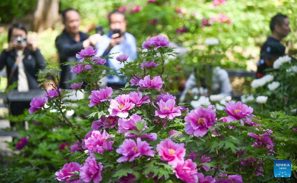 People take photos of peony flowers at a park in Luoyang City, central China's Henan Province, April 6, 2025. Qingming Festival, or Tomb-Sweeping Day, falls on April 4 this year. It is a traditional Chinese festival for people to pay tribute to the dead and worship their ancestors. The holiday also provides a short break for Chinese citizens as they engage in outdoor activities and sightseeing. (Photo by Huang Zhengwei/Xinhua)