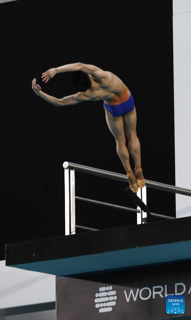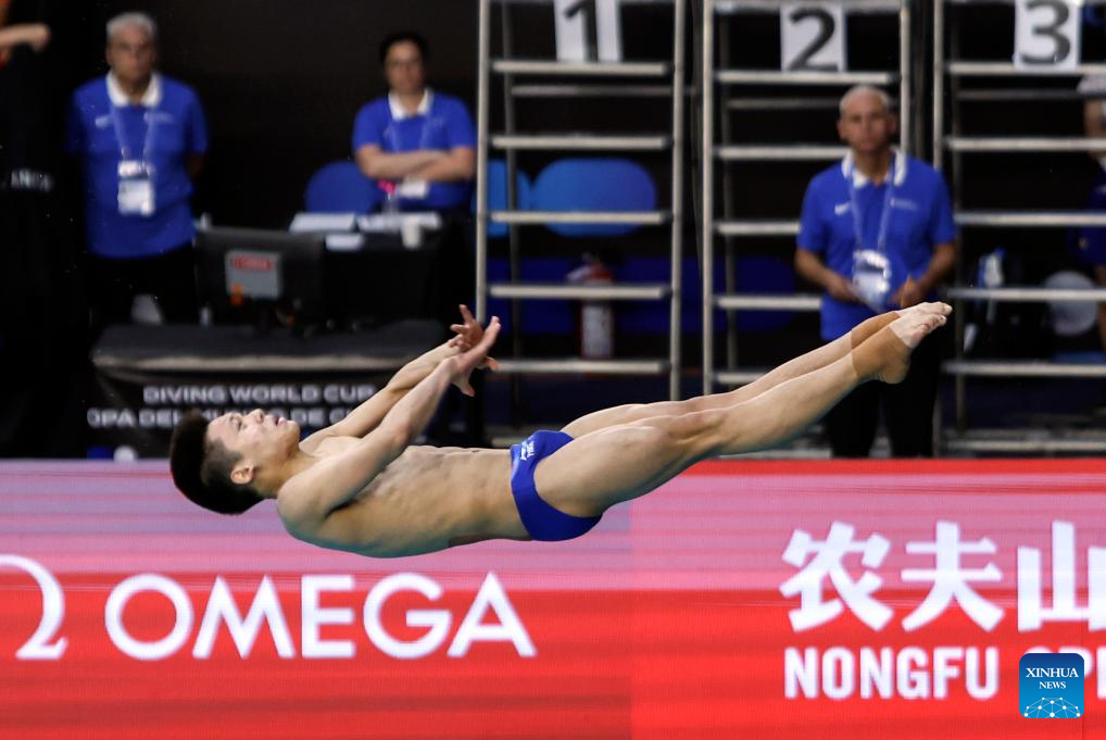 Zhu Zifeng of China competes during the men's 10m platform final at the World Aquatics Diving World Cup 2025 in Guadalajara, Jalisco, Mexico, on April 6, 2025. (Photo by Diana Marquez/Xinhua)