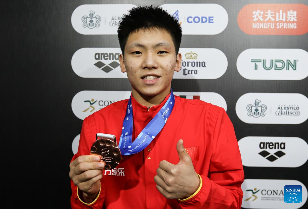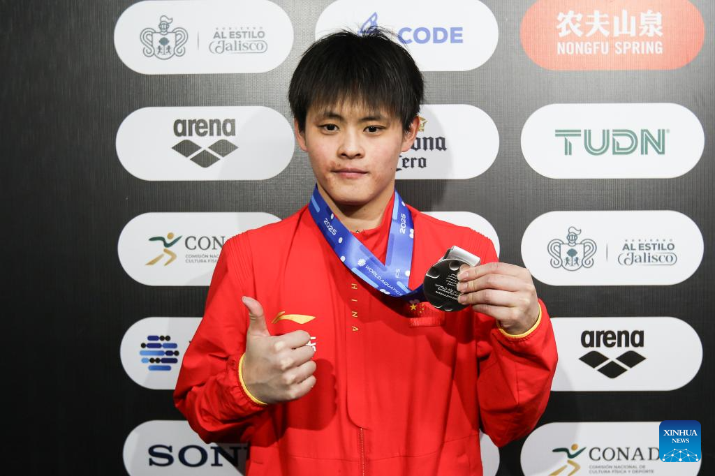 Bronze medalist Cheng Zilong of China poses after the awarding ceremony for the men's 10m platform final at the World Aquatics Diving World Cup 2025 in Guadalajara, Jalisco, Mexico, on April 6, 2025. (Photo by Diana Marquez/Xinhua)