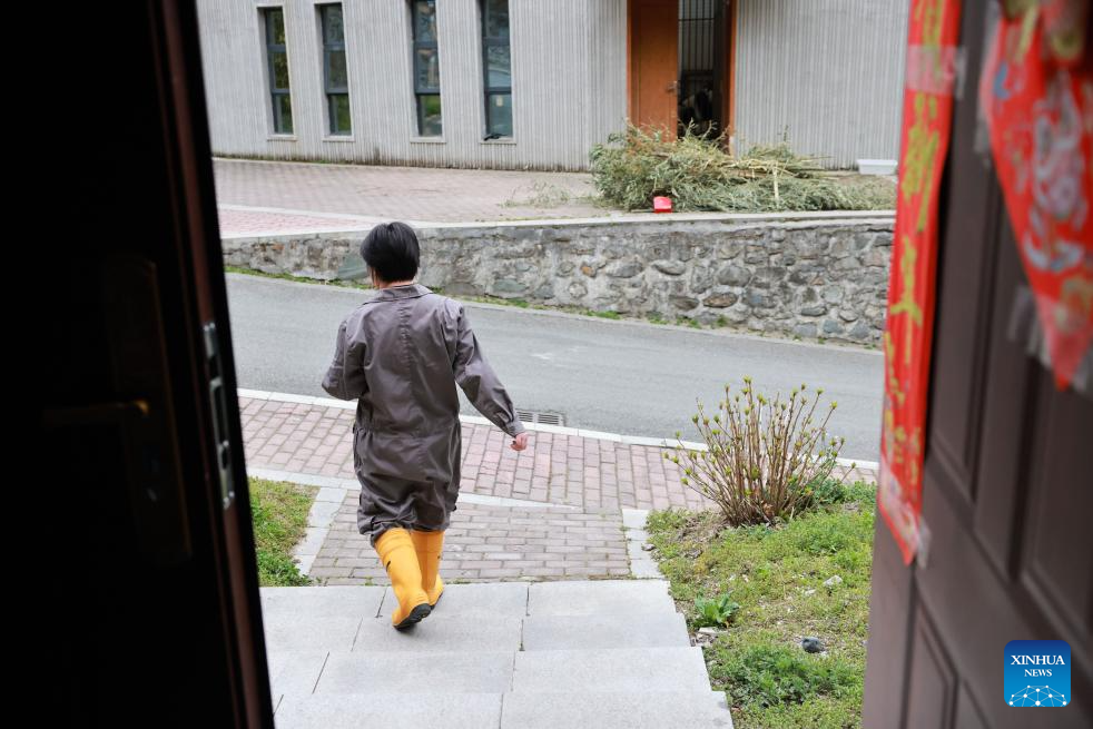Giant panda keeper Li Rong makes preparations for her work at the Shenshuping giant panda base of Wolong National Nature Reserve in southwest China's Sichuan Province, March 28, 2025. (Xinhua/Xu Bingjie)