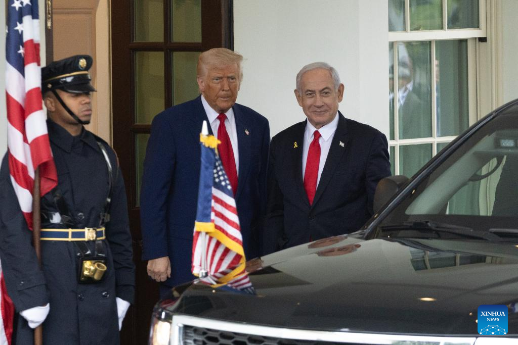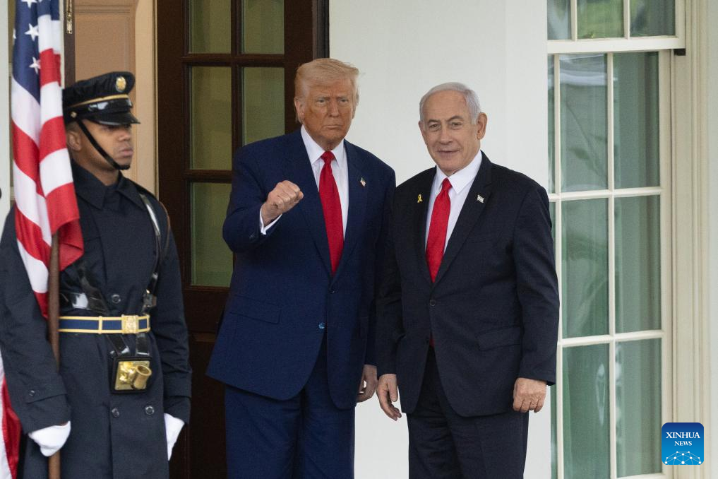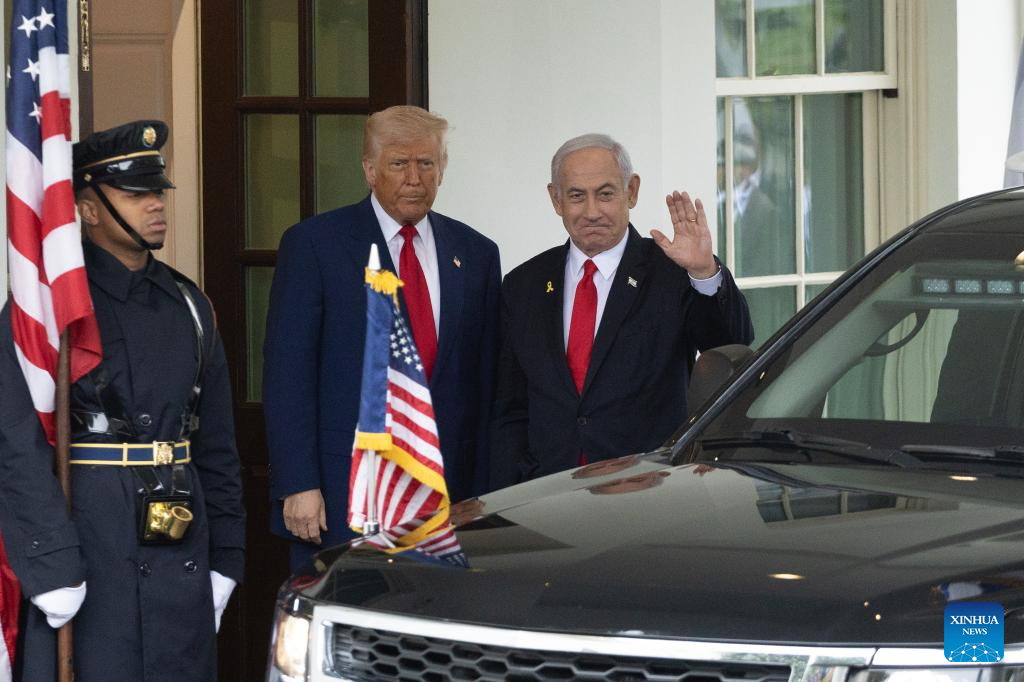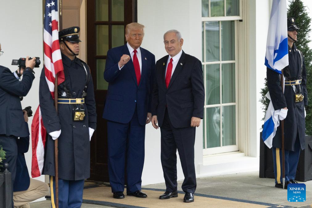 WASHINGTON, April 7 (Xinhua) -- U.S. President Donald Trump and Israeli Prime Minister Benjamin Netanyahu met at the White House on Monday, focusing on the Gaza hostage crisis and U.S. tariffs on Israeli goods.