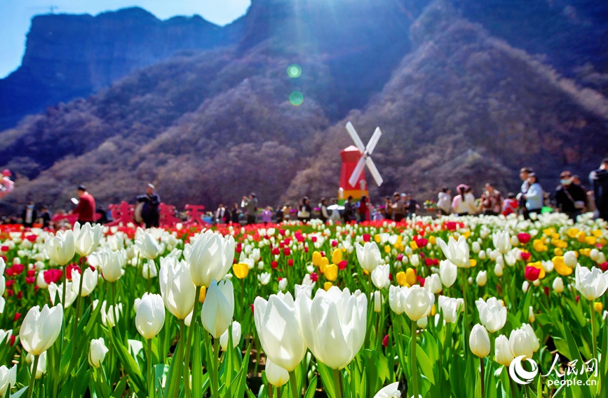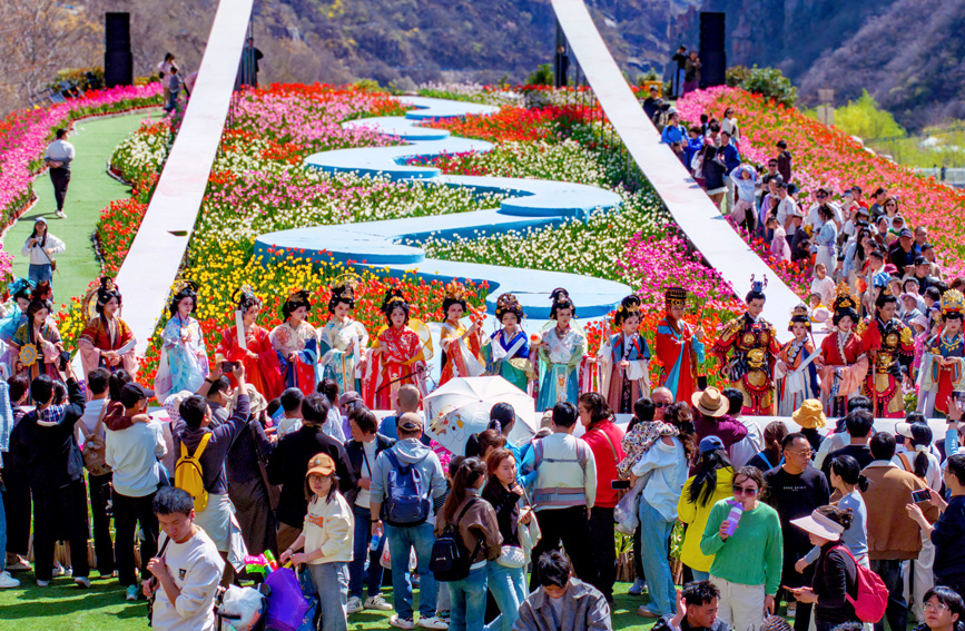 Recently, as temperatures have risen, 3 million tulips have reached full bloom in the Baoquan Grand Canyon Scenic Area in Xinxiang, central China's Henan province. The scenic area has transformed into a floral wonderland, drawing crowds of visitors eager to embrace the beauty of spring. Tourists and locals alike are flocking to the site to admire the breathtaking sea of blossoms and soak in the seasonal charm.