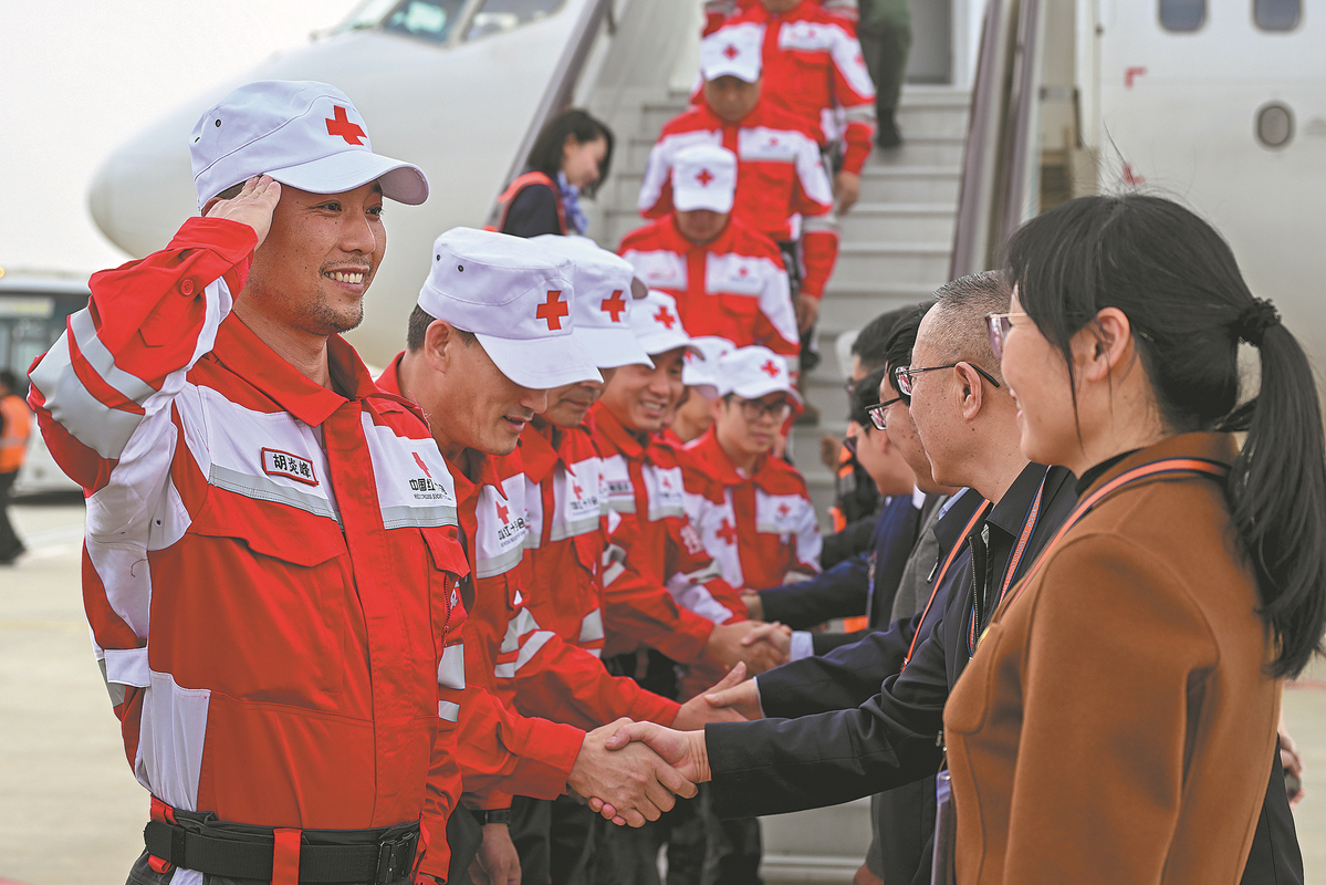 Besides the Chinese Red Cross team, a 37-member rescue and medical team from Yunnan also returned on Sunday. It was the first international rescue team to arrive in Myanmar within 18 hours of the earthquake. The team carried out rescue operations and actively assisted Myanmar in developing infectious disease prevention plans in the quake-hit areas.