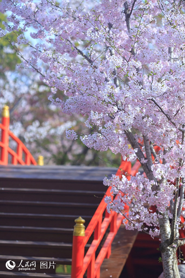Photo shows blooming cherry blossoms at Jiaoye Park in Kunming, capital of southwest China's Yunnan Province, April 3, 2025. (People's Daily Online/Zhuang Zhibin)