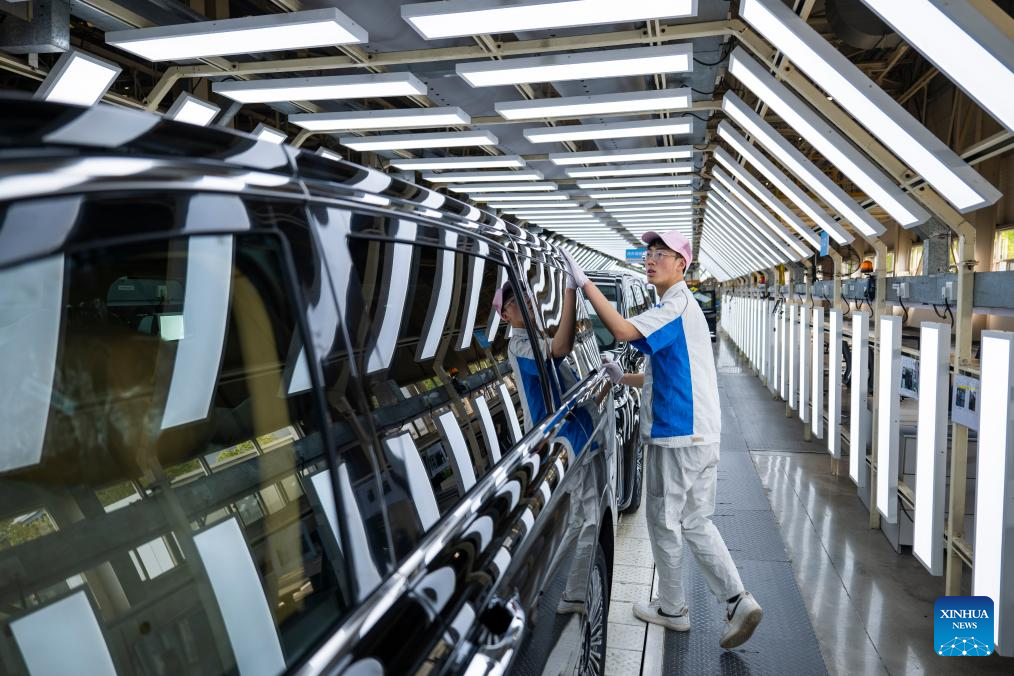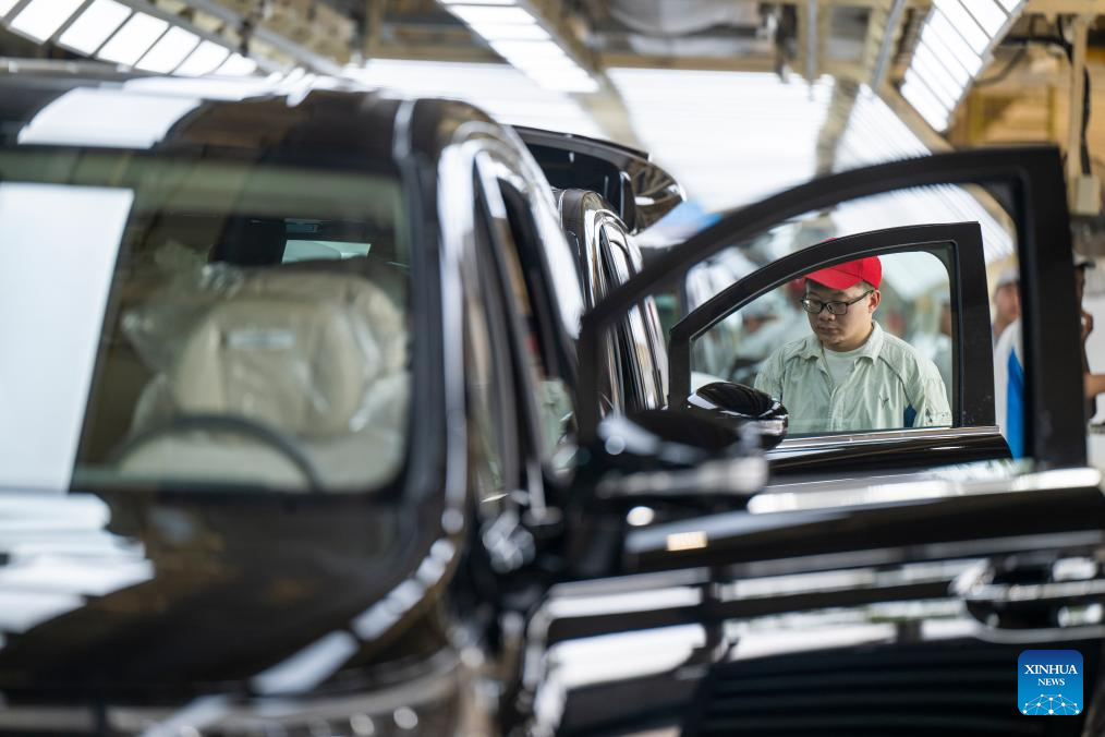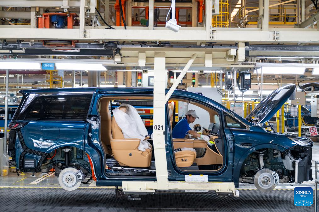 The 200,000th vehicle of Voyah, a Chinese NEV brand, rolls off the assembly line in Wuhan, central China's Hubei Province, April 9, 2025. (Xinhua/Wu Zhizun)
