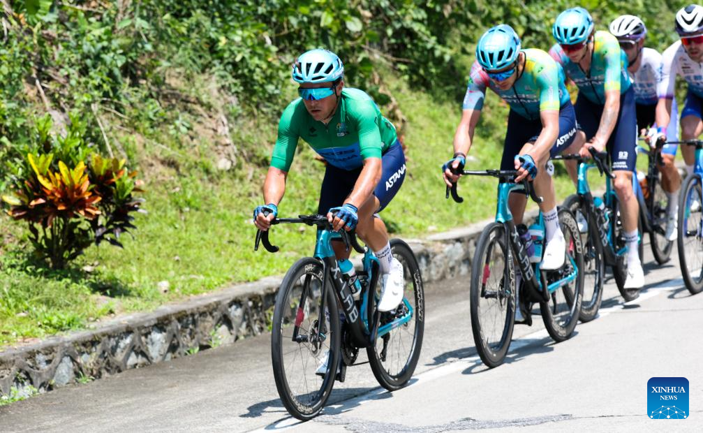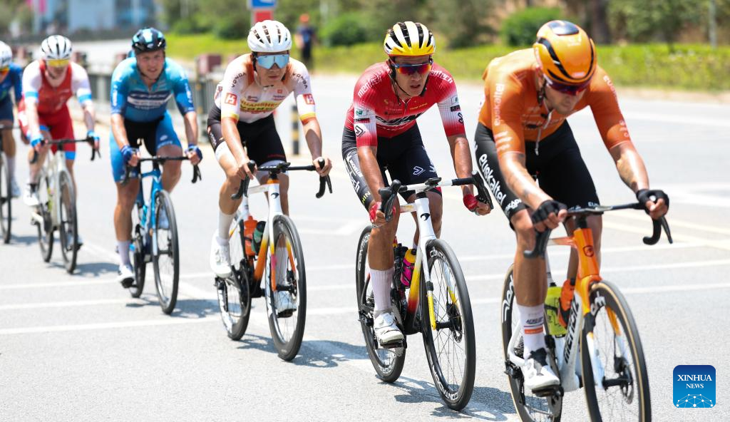 Matteo Malucelli (1st L) of XDS Astana Team competes during Stage 3 at the 16th Tour of Hainan cycling race from Lingshui to Baoting, south China's Hainan Province, April 9, 2025. (Xinhua/Yang Guanyu)