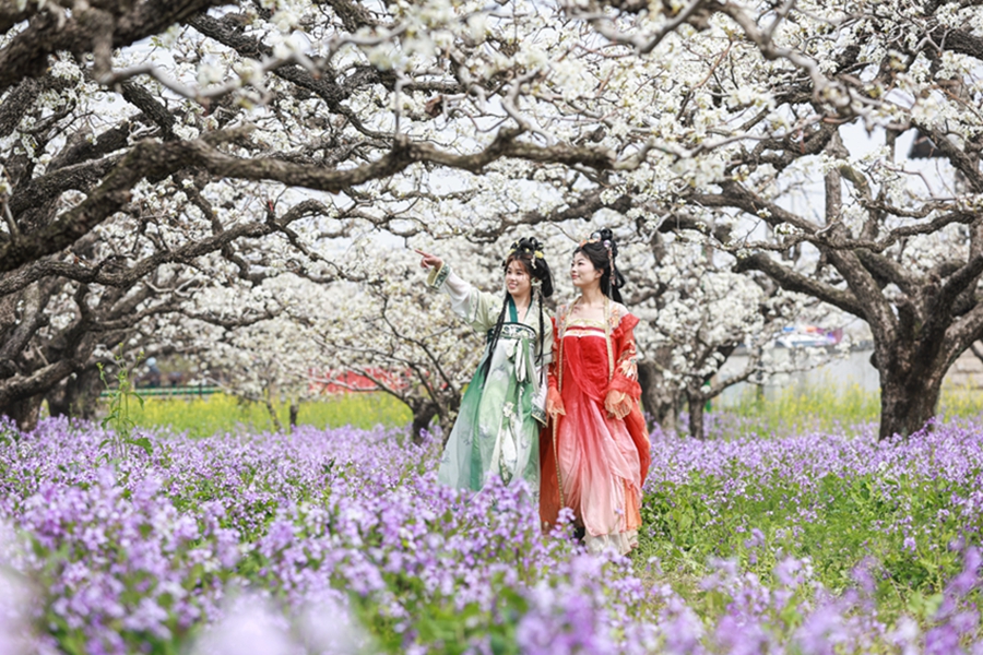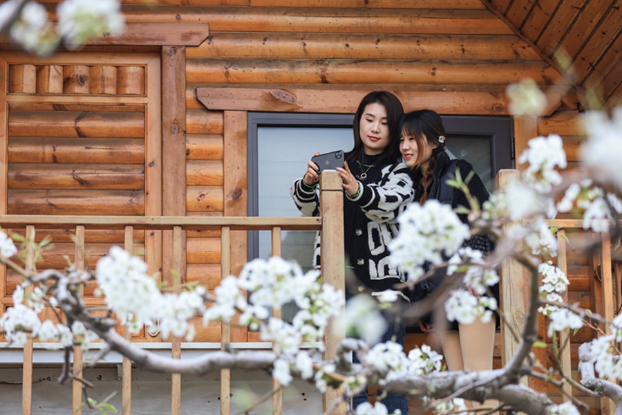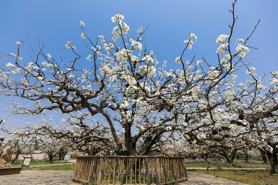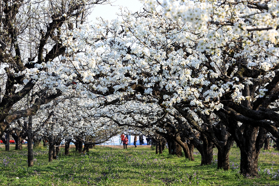 As spring arrives, pear blossoms are in full bloom again in Dangshan county, east China's Anhui Province. Located at the junction of the four provinces of Anhui, Jiangsu, Shandong, and Henan, Dangshan county is renowned as the "World Pear Capital." It boasts contiguous pear orchards spanning over 1 million mu, as well as the old Yellow River course. With a forest coverage rate exceeding 70 percent, it is dubbed a "natural oxygen bar." The county has become a top-tier eco-cultural tourism destination in the country.