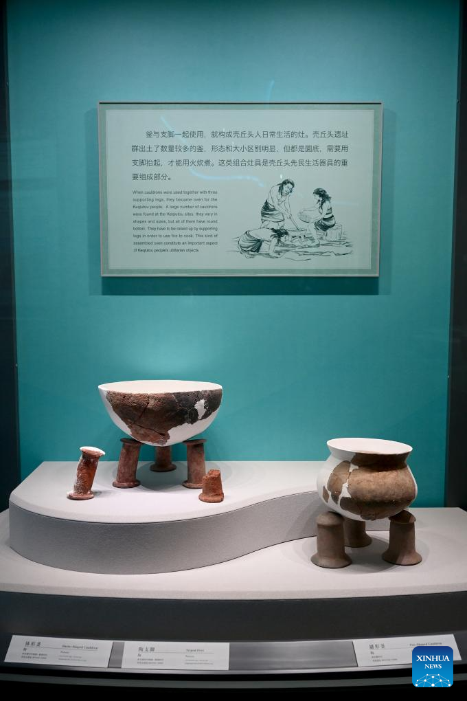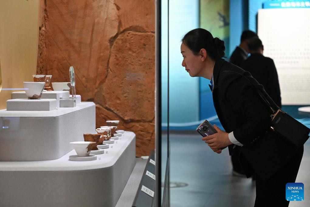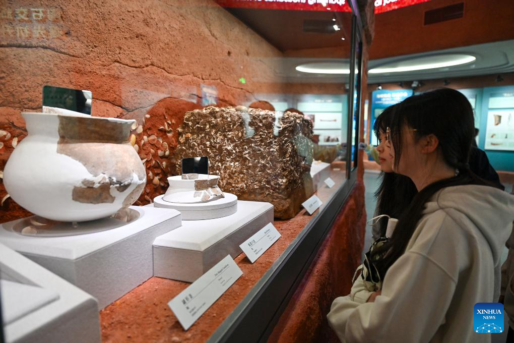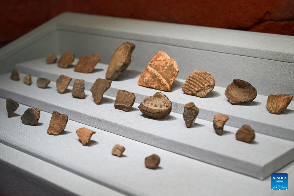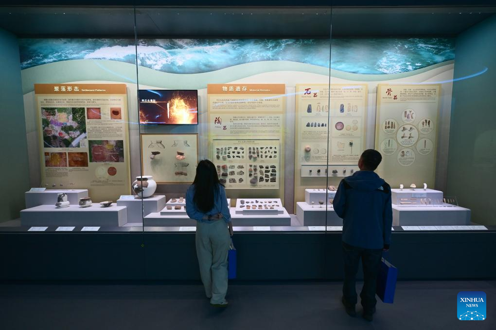 Exhibits are displayed at Keqiutou Branch of China Archaeological Museum in Pingtan, southeast China's Fujian Province, April 8, 2025. The inauguration ceremony of Keqiutou Branch of China Archaeological Museum was held at Keqiutou Site Museum in Pingtan on Wednesday. (Xinhua/Li Xin)