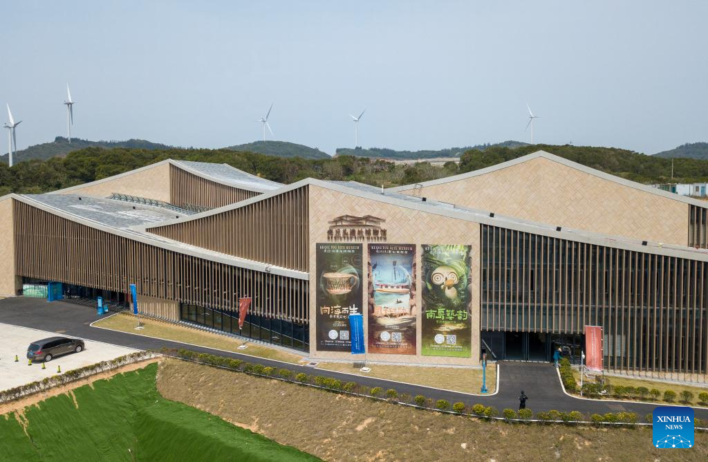 A drone photo shows an external view of the Keqiutou Branch of China Archaeological Museum in Pingtan, southeast China's Fujian Province, April 9, 2025. The inauguration ceremony of Keqiutou Branch of China Archaeological Museum was held at Keqiutou Site Museum in Pingtan on Wednesday. (Xinhua/Li Xin)