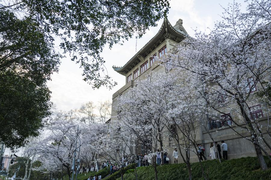 People enjoy cherry blossoms at Wuhan University in Wuhan, capital of central China's Hubei Province, March 22, 2025. (Xinhua/Wu Zhizun)
